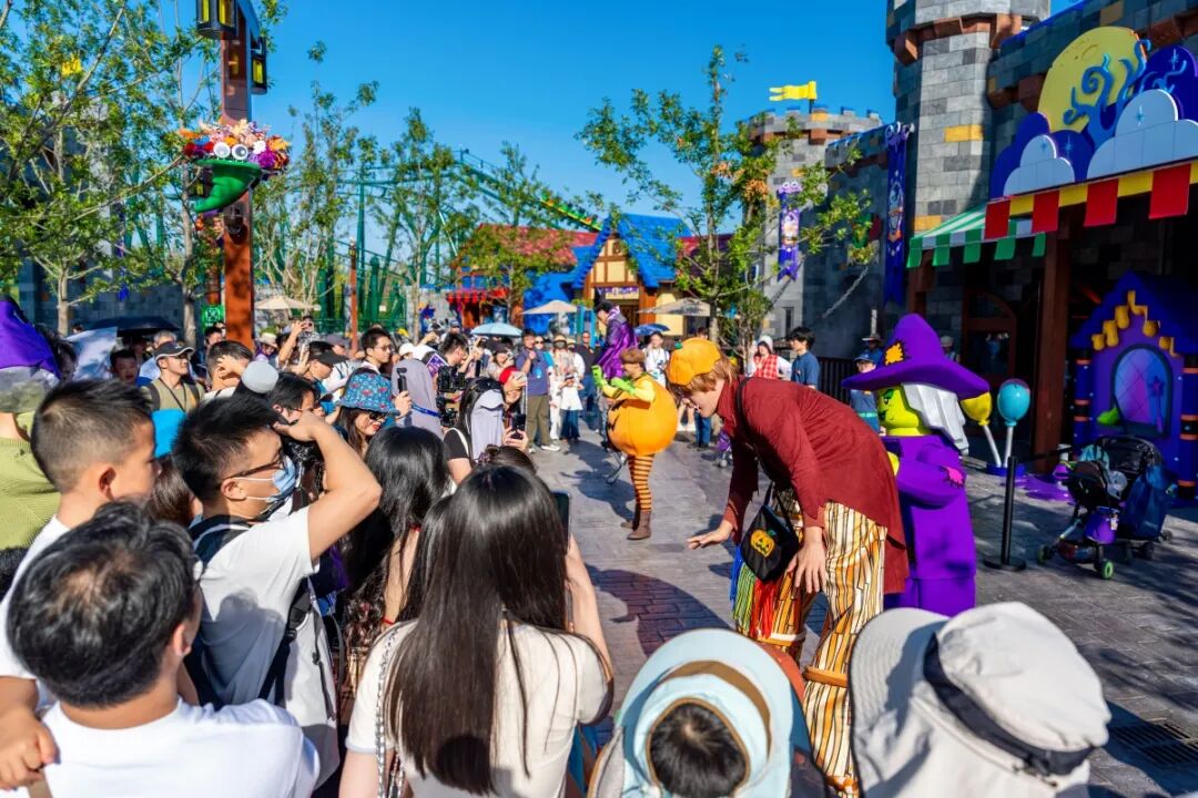 魔性的旋律“树木咕噜,噢哩噢哩,搭搭搭搭”瞬间点燃草坪。僵尸伯爵一个滑步登场,率领小怪兽们一起疯狂摇摆。家长带着打扮成小巫师、小幽灵的孩子,其乐融融;也有年轻的游客组队前来,造型创意十足。在这里,盛装不仅不会被侧目,反而是一种融入派对的最佳方式。我站在人群中,看着眼前这片由灯光、音乐、欢笑和无数乐高积木构成的奇幻景象,一种强烈的抽离感涌上心头。它像是一个与现实隔绝的快乐气泡,让人暂时忘却了城市外的喧嚣与琐碎。