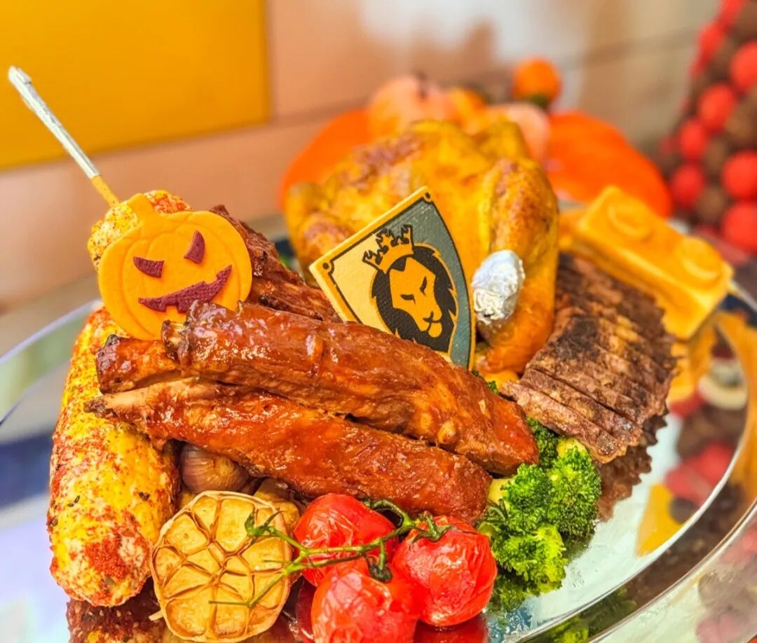满足了眼睛也不能亏待肚子。“骑士宴会餐厅”享受万圣节主题自助晚餐就是最好的选择。金黄诱人的烤鸡、汁水丰盈的肋排与牛胸肉,搭配特调魔药饮品与“鬼脸”造型点心,不仅满足味蕾,更延续了整体的派对氛围,令人仿佛置身于异世界部落的欢庆盛宴中。