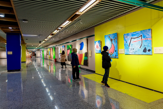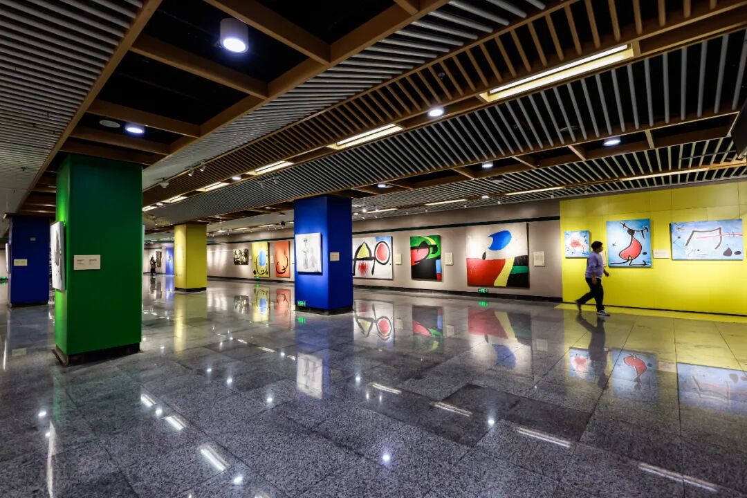 本次展出的每件作品均严格遵循原作的尺寸、色彩与质感进行复刻,结合精心设计的展陈布局,使地铁站化身为沉浸式的艺术现场,令人仿若置身巴塞罗那的胡安·米罗基金会。