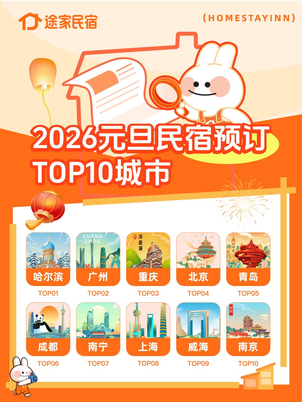 哈尔滨、威海核心景点内,窗外就有最美雪景、设计感十足的民宿成为景观的一部分,受到游客偏爱,两个冰雪城市元旦民宿预订位居全国前列;河南开封万岁山武侠城爆火,酒店不足,民宿补位,周边有民宿元旦期间的6成房源已订光;广西南宁多场跨年演唱会引人流,当地民宿提供的“After Party”设施,让粉丝可以延续热情。