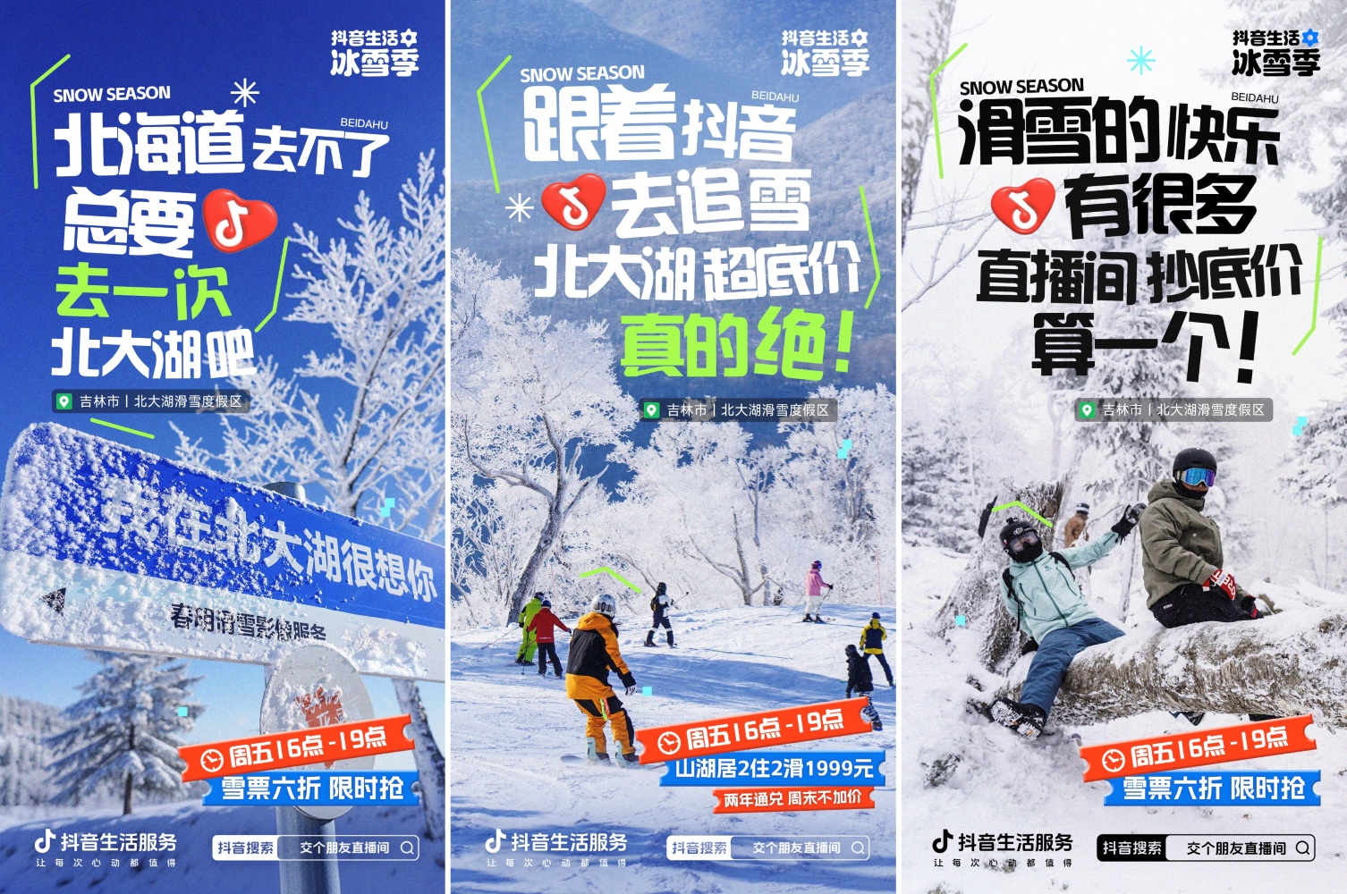 新疆的将军山、禾木的吉克普林、河北崇礼的富龙、吉林的北大湖……从西北到东北再到华北,全在抖音上抢客源。