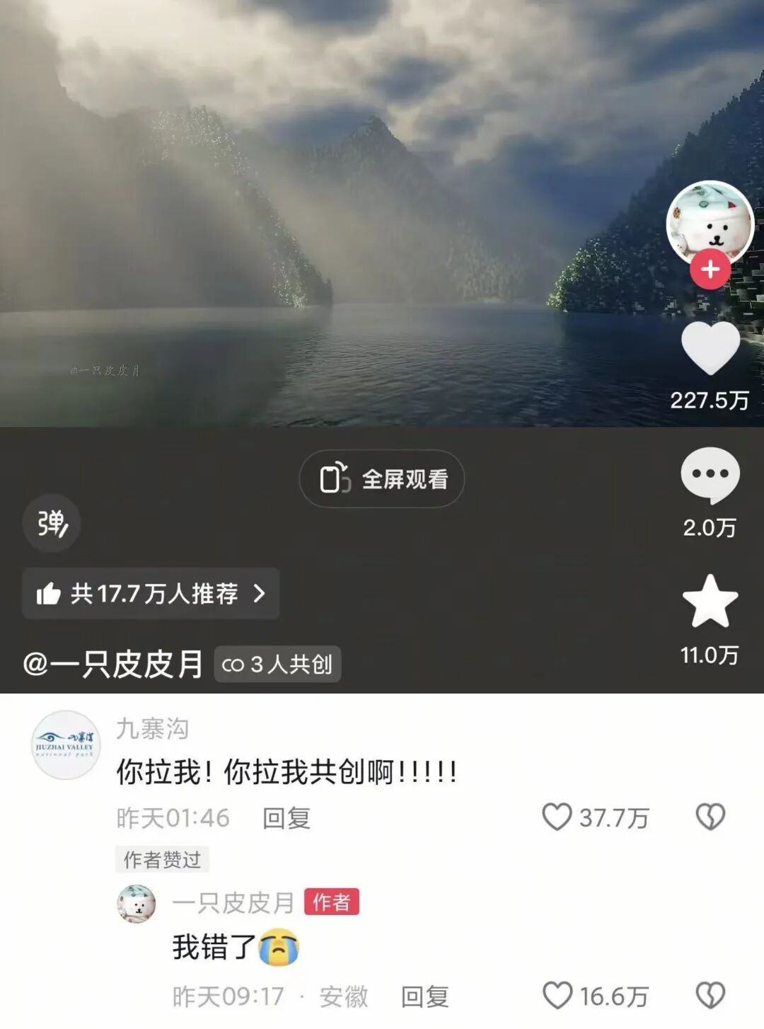 于是九寨沟官方账号凌晨蹲在博主评论区,发出了绝望又可爱的呐喊:“你拉我!你拉我共创啊!”