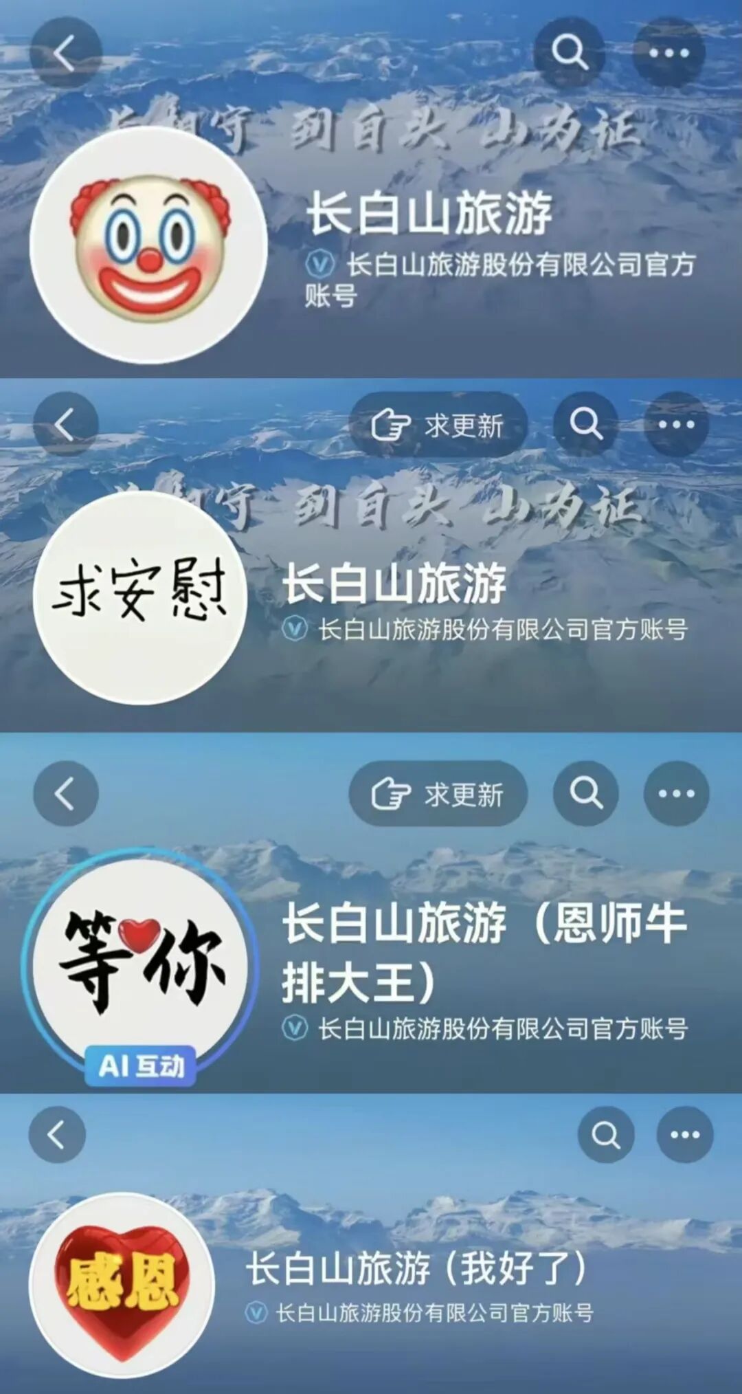 最出圈的是长白山文旅,连续几次“求翻牌”未果后,他们把头像改成了小丑,选择了一条“黑化”之路——求人不如求己!