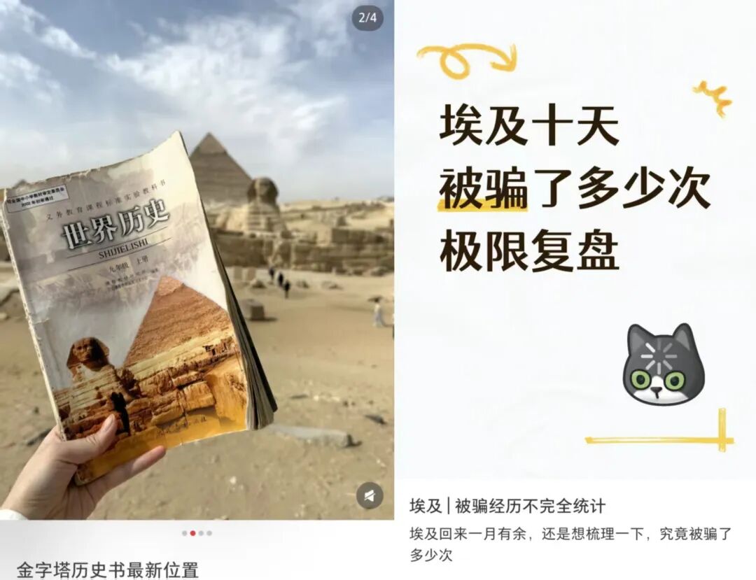 你打开抖音、小红书,搜埃及,出来的东西基本分两类:一种是金字塔拍照攻略,另一种是“我在埃及一天被骗八次”的血泪史。