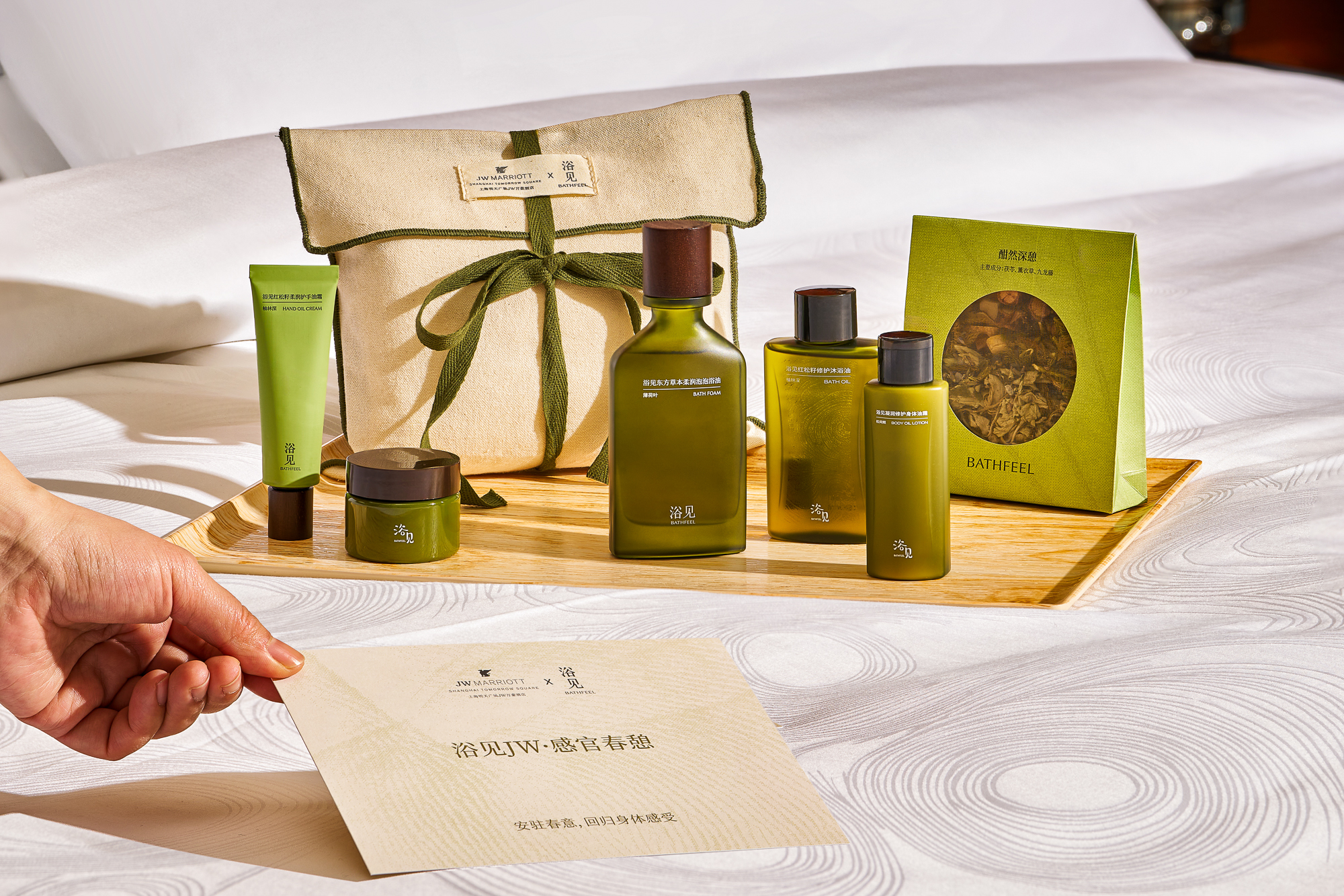 通过此次联名合作,浴见和上海明天广场JW万豪酒店将“感官春憩,心归此时”的核心理念融入每一处服务细节。无论是在“旅居第二浴室”中重塑护理仪式,还是在云端茶叙中品味时令,酒店始终致力于让每一位宾客在步履匆匆的旅程中,得以全然沉浸,焕活身心。