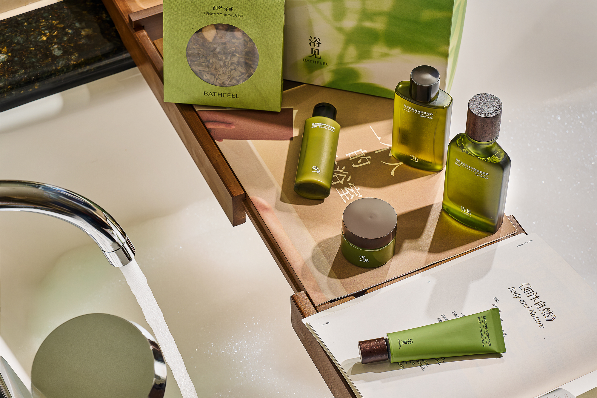 套餐内含定制的「感官春憩」浴见身体护理旅行套装,包含草本浴包、草本泡泡浴油、磨砂油膏、沐浴油、身体油霜、护手油霜。从沐浴清洁到养护放松,从晨间焕活到入夜舒缓,从身体到情绪,水声和春日柚林的香气交织,一套触达五感的完整身体护理仪式在“第二浴室”中徐徐展开。通过浴见“以油养全身”的护理哲学,将天然植物油脂与树木香气融入沐浴过程,创造关注自我的时刻,让身体拥有松弛而自由的感受。