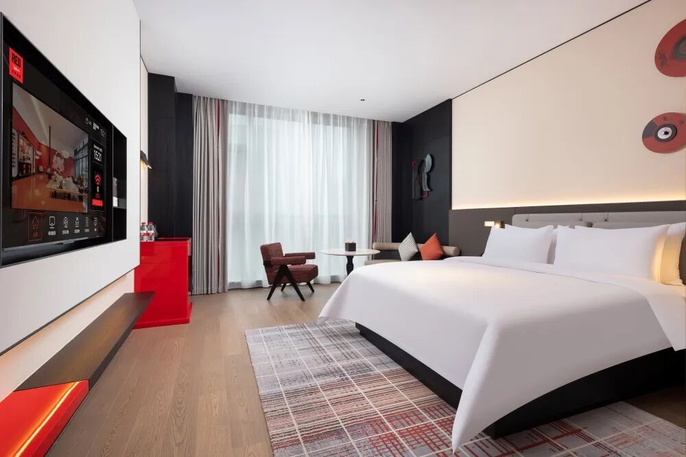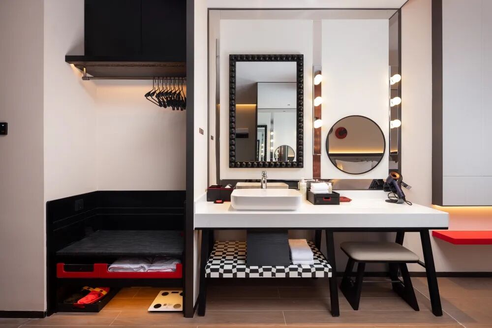 作为品牌成都首店,其将品牌特有的红调设计,与成都最具代表性的文化符号——太阳神鸟元素及茶馆文化等混搭,瞄准的是追求个性、设计感和社交体验的新一代旅行者。住这儿的人,大概率会拍九张图发朋友圈,顺便定位打个卡。