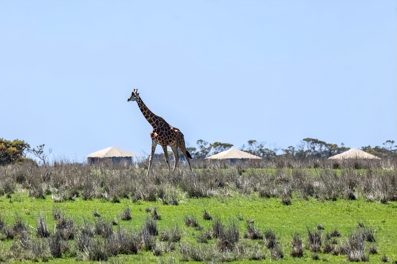 在帐篷中醒来,欣赏毫无遮挡的景色,斑马与长颈鹿就在不远处;
