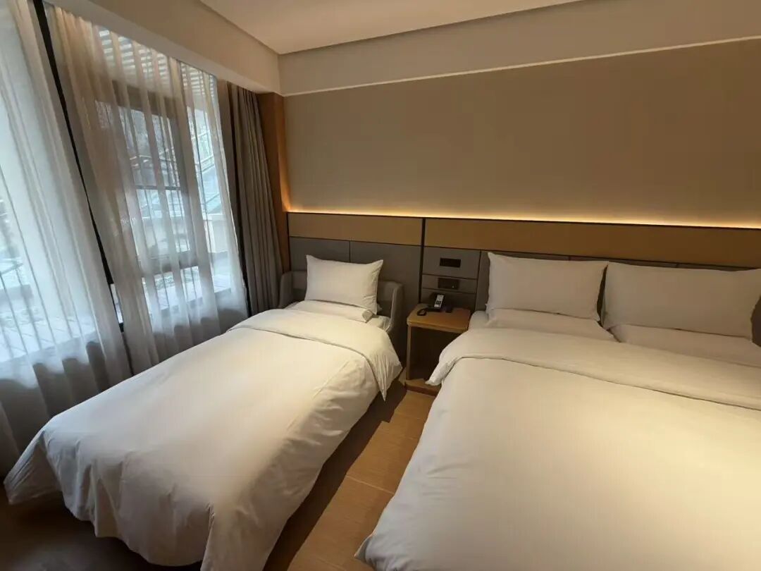 我给她发了一张图,是全季某门店的标间,床旁边的沙发一拉,瞬间变出第三张床。一家三口睡得像在家里一样踏实,不仅不用加床费,房价还不到那家亲子酒店的一半。