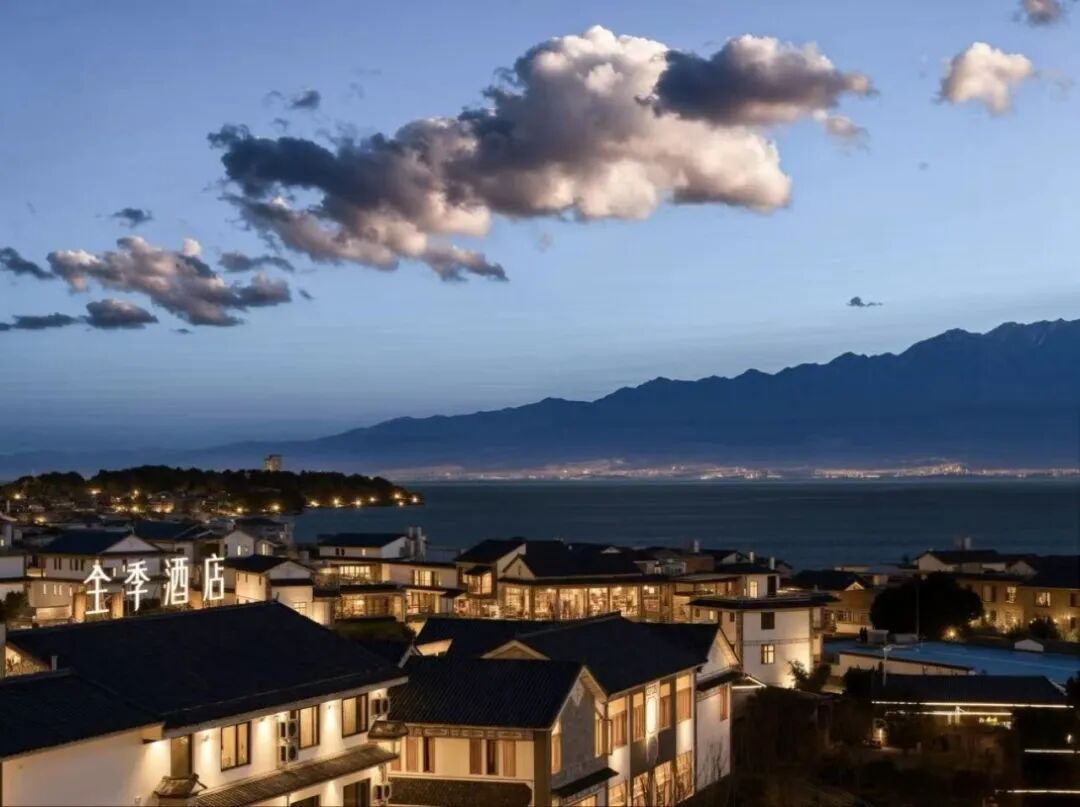 后来,他在社交媒体上刷到全季大理双廊古镇酒店的照片,宋氏庭院、中式连廊、绿植水景,房间直直怼着洱海。